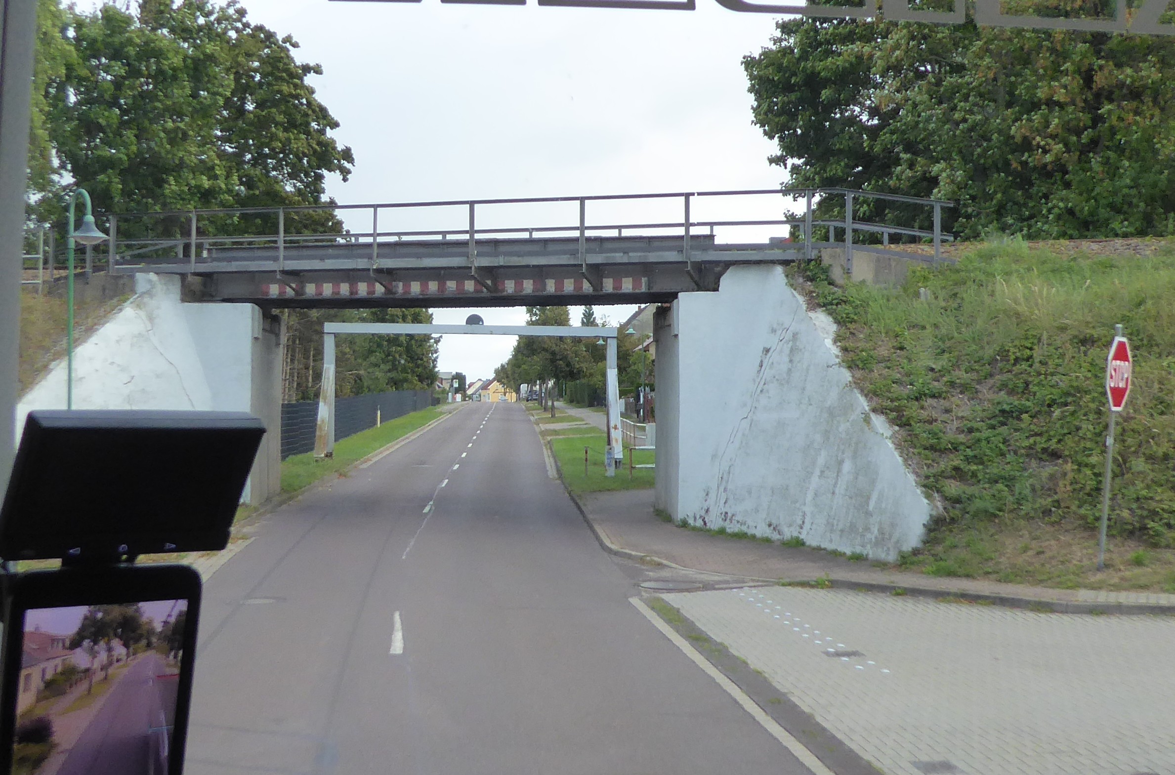 Bahnbrücke in Güsen über Breiter Weg, Ansicht v. Süd