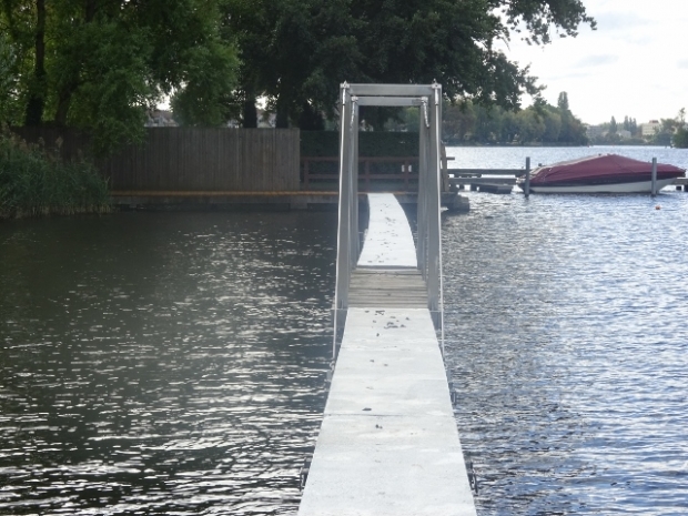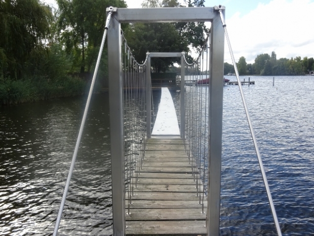 Fußwegbrücke im Flußbad Köpenick Gartenstraße Krokodil / Dahme