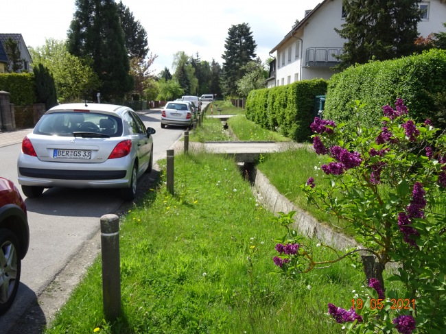 6. Grundstückszufahrtbrücke / Zulaufgraben zum Teich, im bildvordergrund