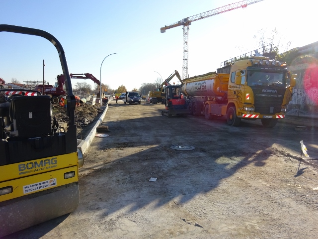 Kiefholzstraßenbrücke / A 100 Autobahn neu, hinter der in Aufbereitung befindlichen Zufahrtstraße ( Kiefholzstraße )
