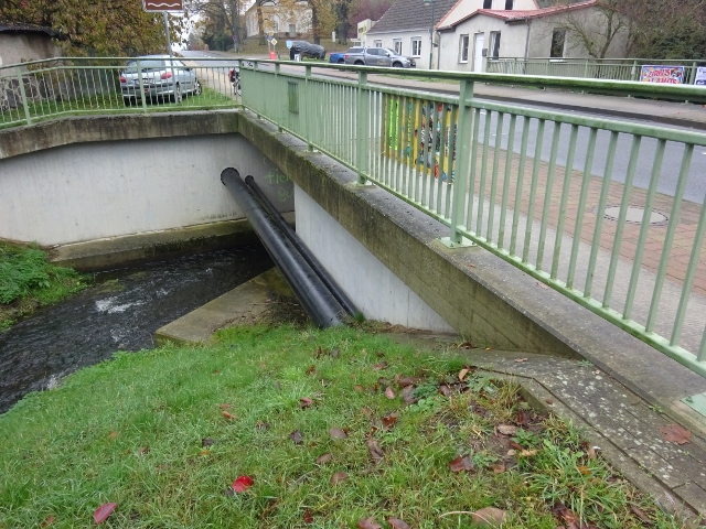 Rohrbrücke / Elde in Wredenhagen, schwarzes Rohr