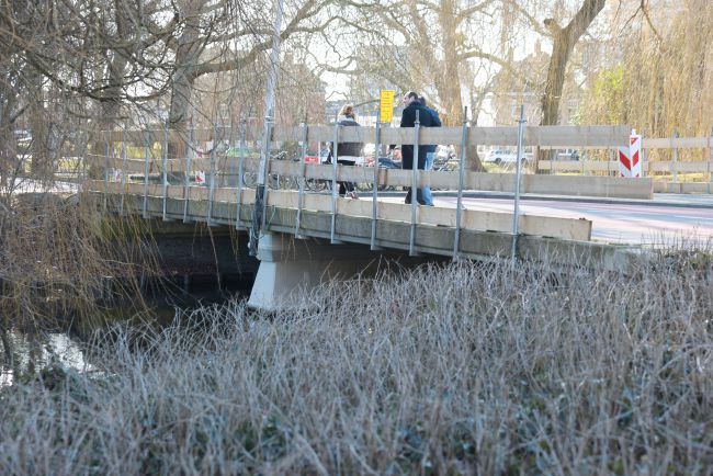 Brückentyp: Bogenbrücke, Bogen unter der Fahrbahn, Erweiterung als Plattenbrücke