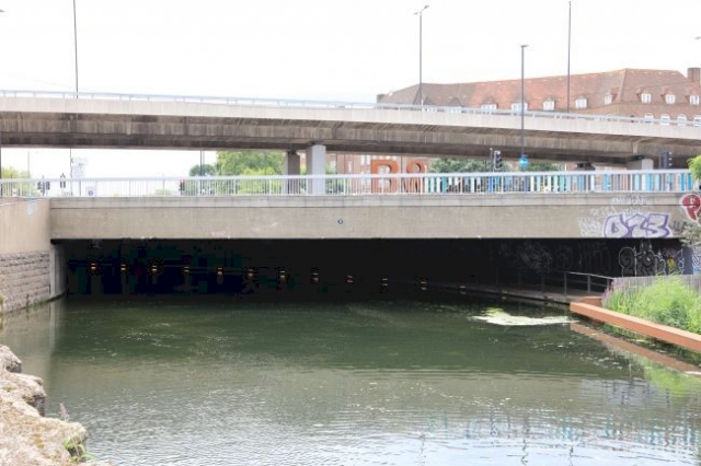 Brückentyp: Bogenbrücke, Bogen über der Fahrbahn- Bewegliche Brücke, Drehbrücke
