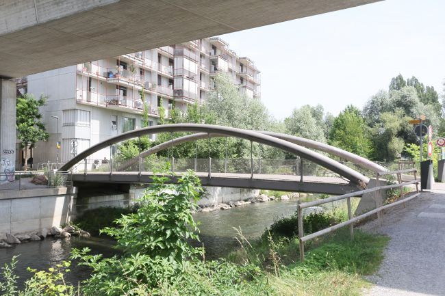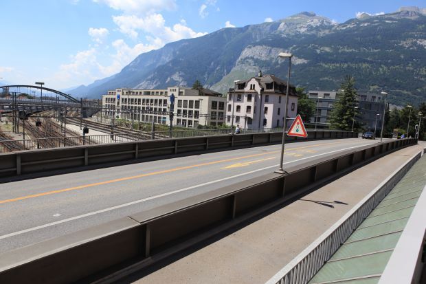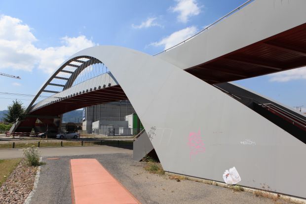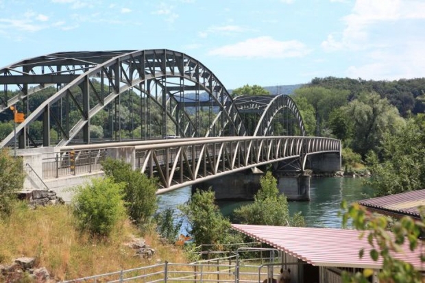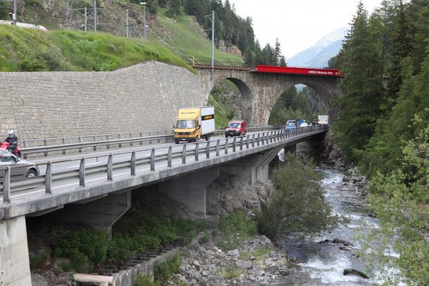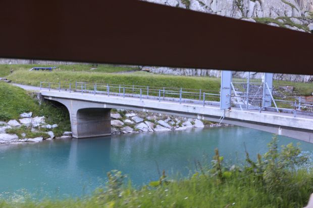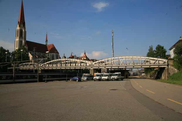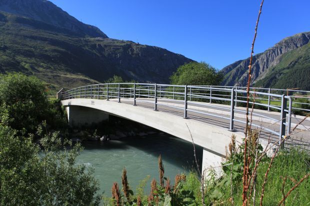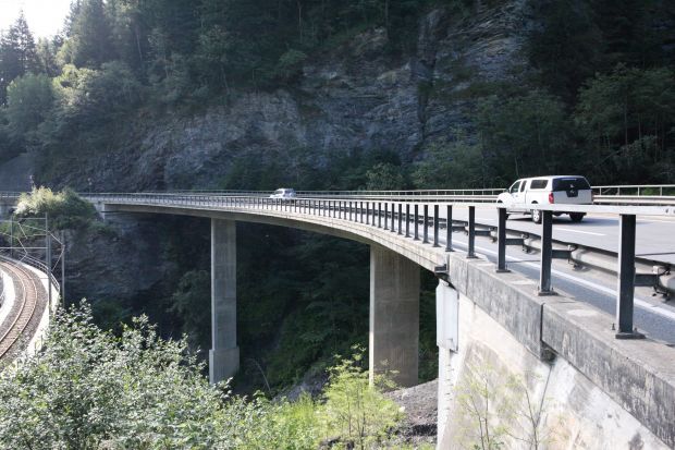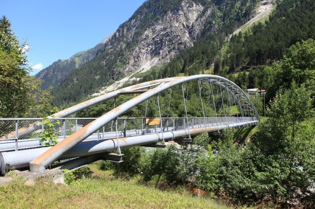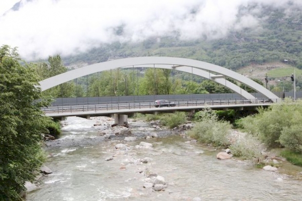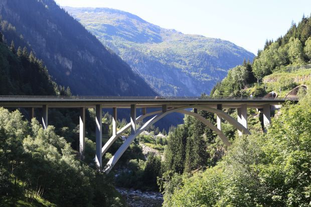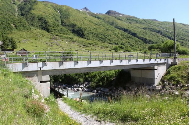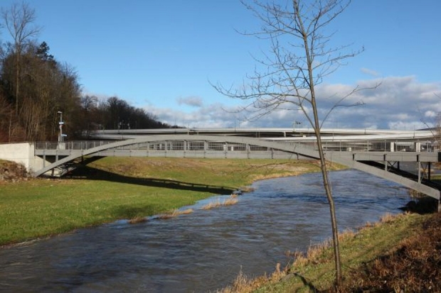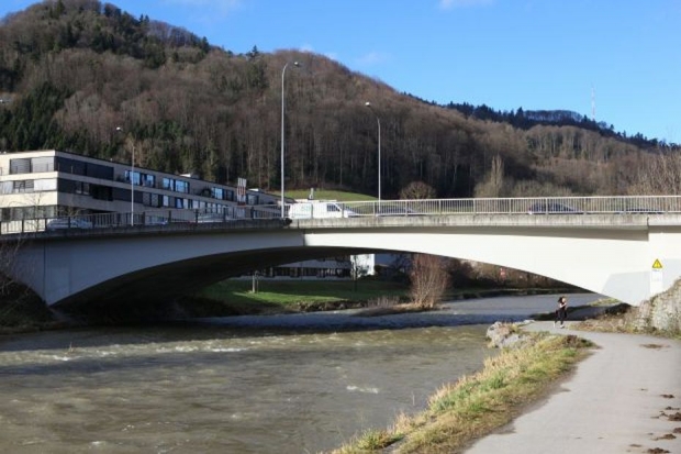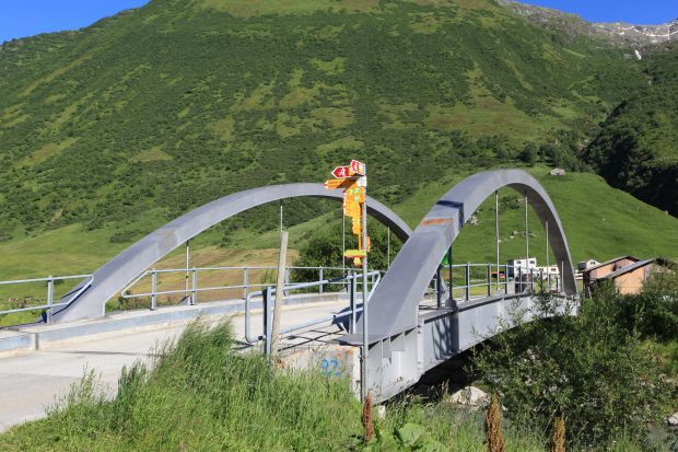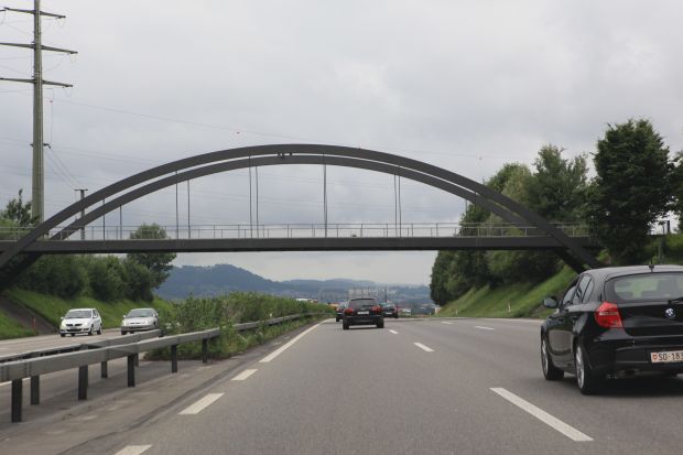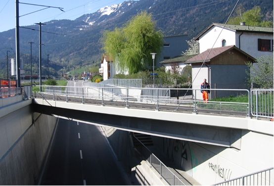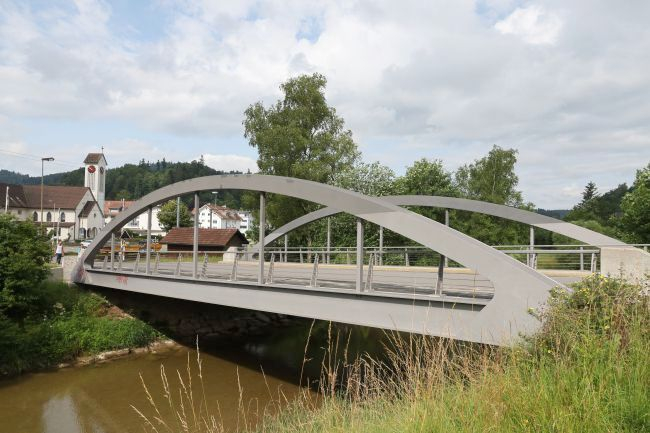 Brückentyp: Bogenbrücke, Bogen unter der Fahrbahn (Dreigelenkbogen)