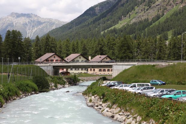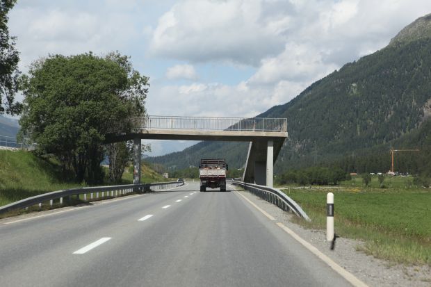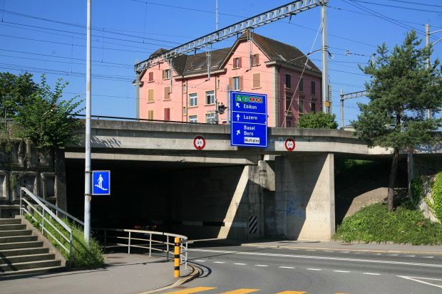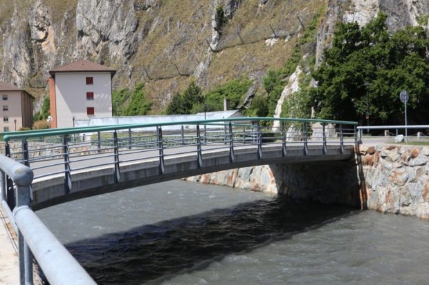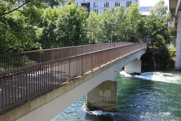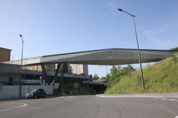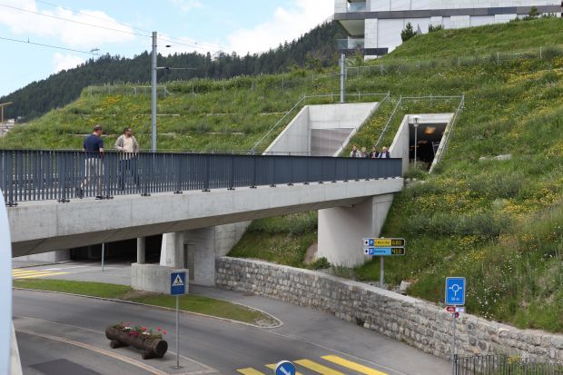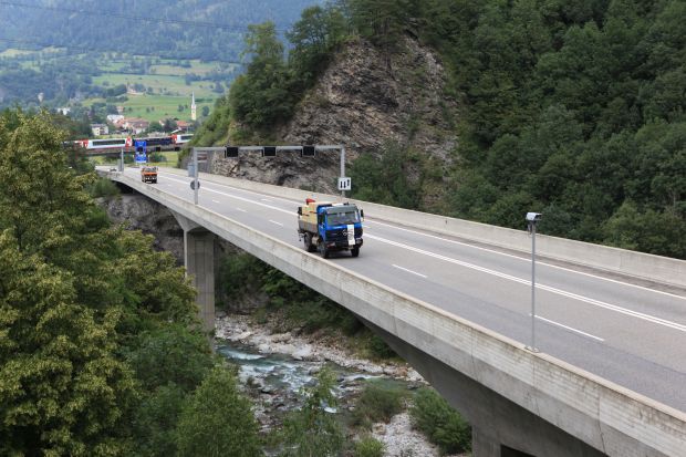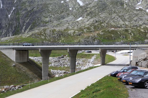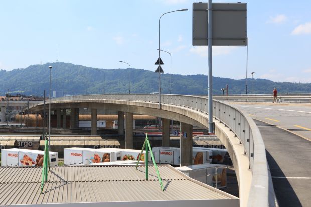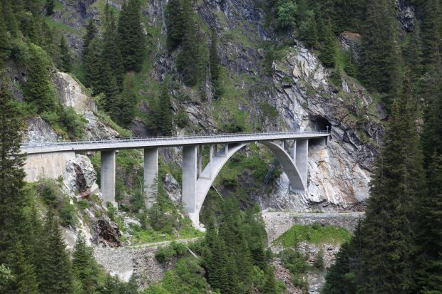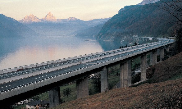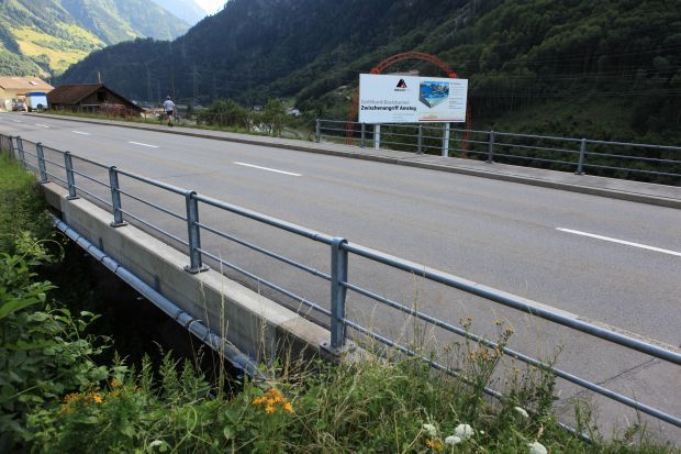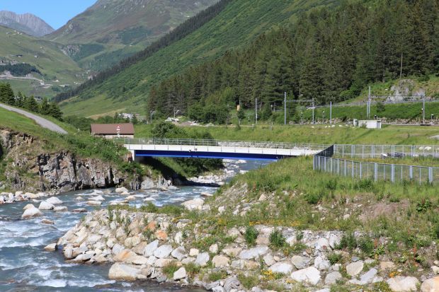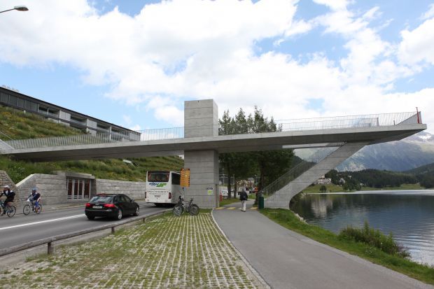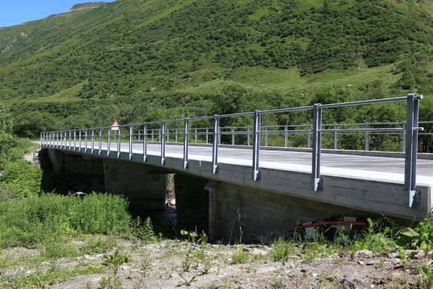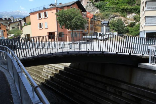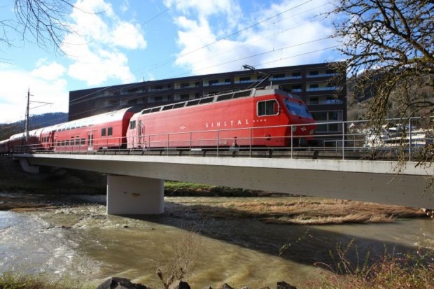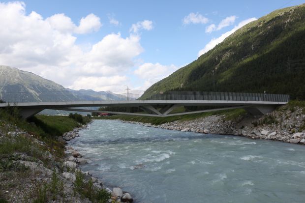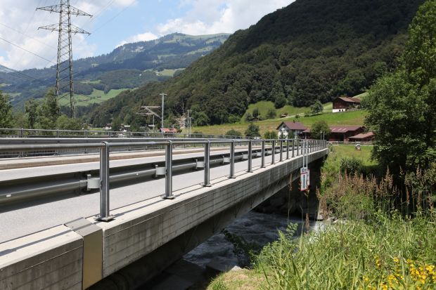 Brückentyp: Bogenbrücke, Bogen unter der Fahrbahn (Dreigelenkbogen)