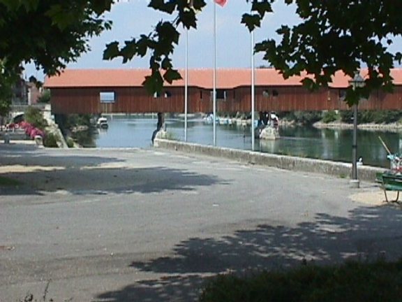 Brückentyp: Bogenbrücke, Bogen über der Fahrbahn, gedeckte Holzbrücke, Covered Bridge