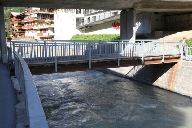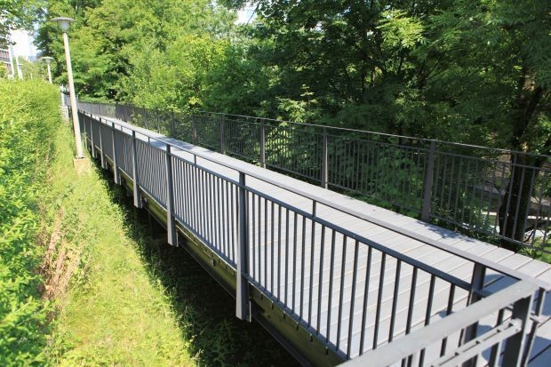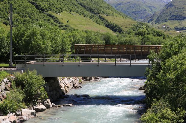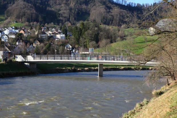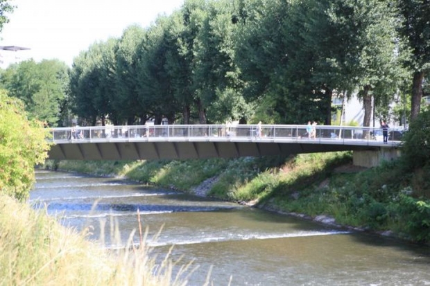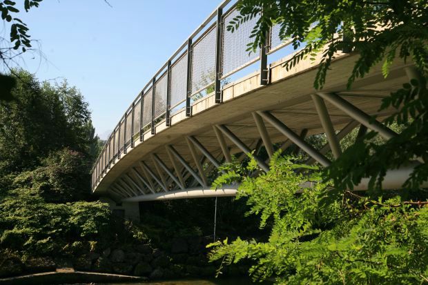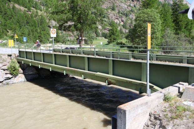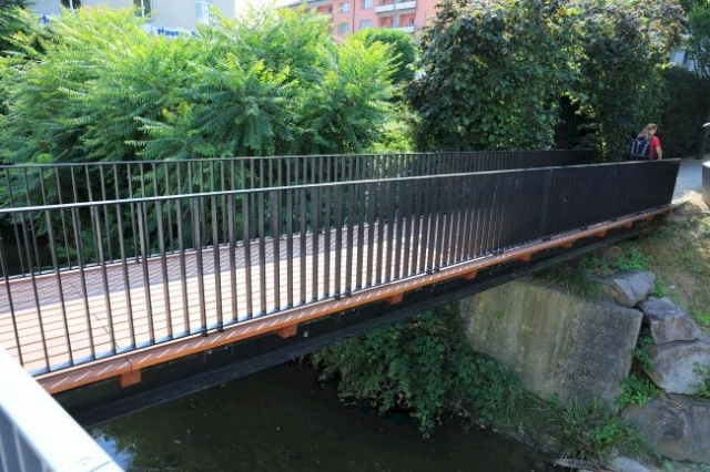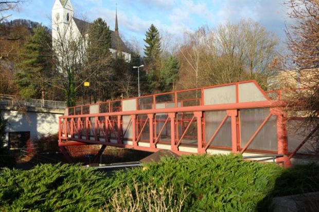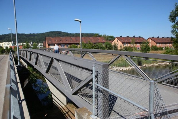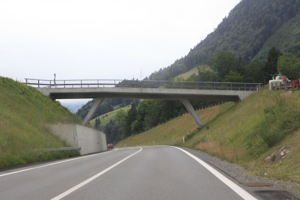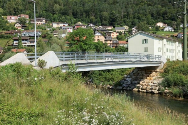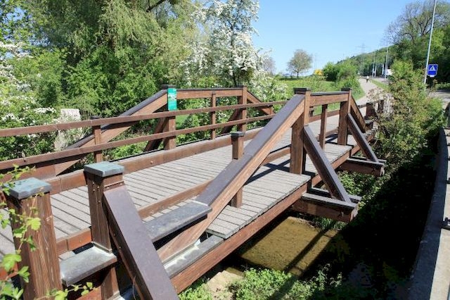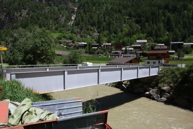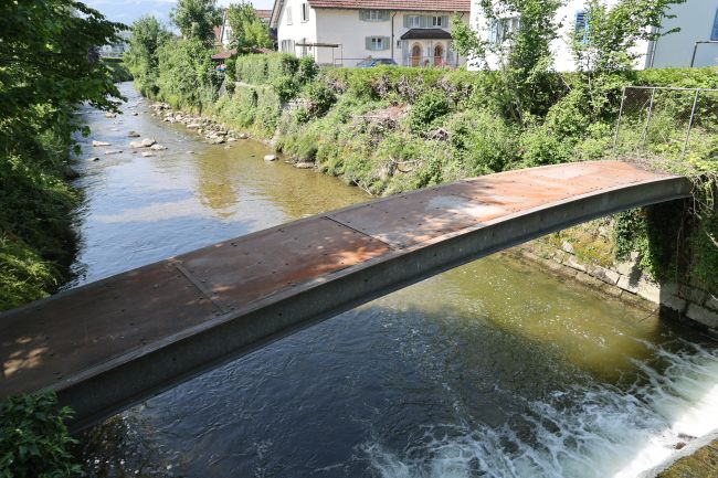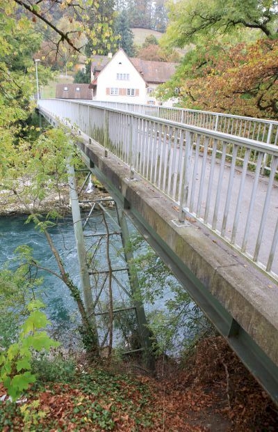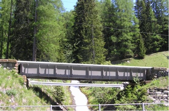Material: Verbundbrücke aus Stahlträgern und Balsaholz ummantelt mit Glasfaserkunststoff