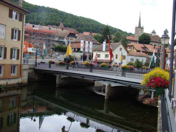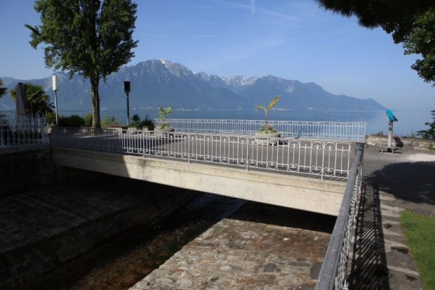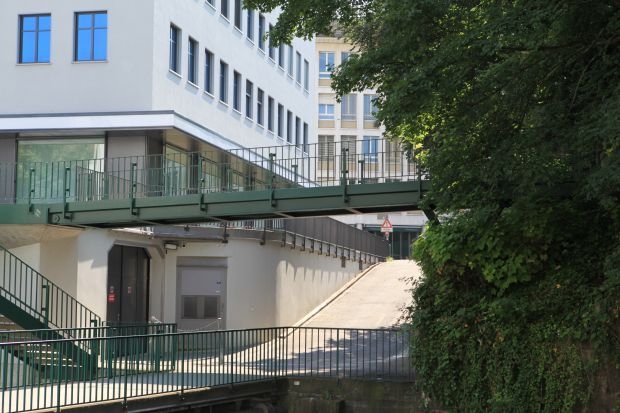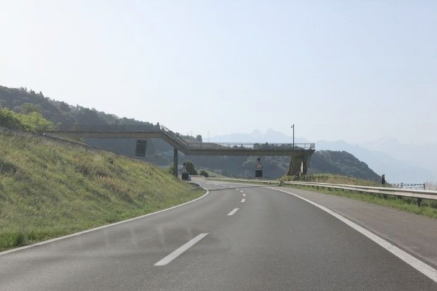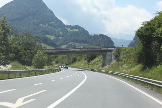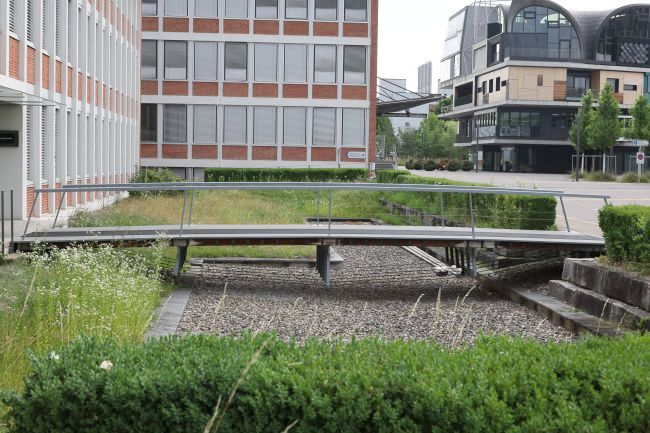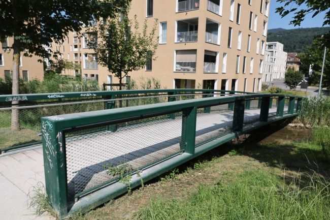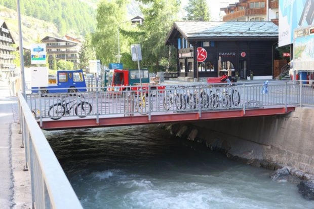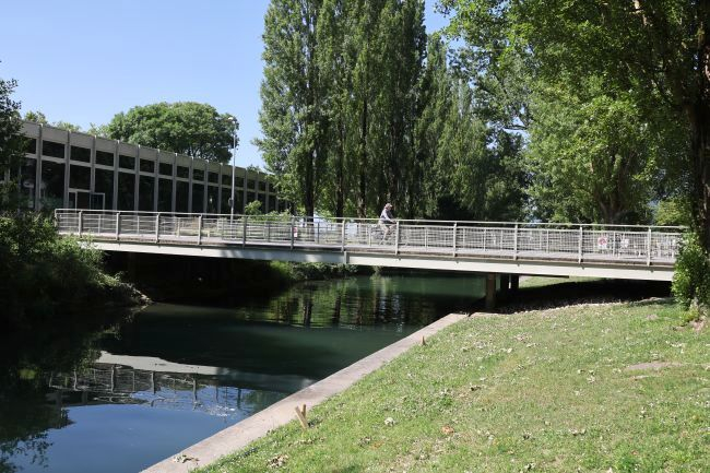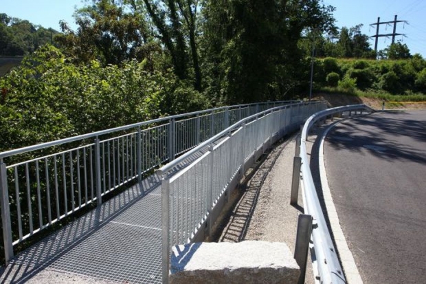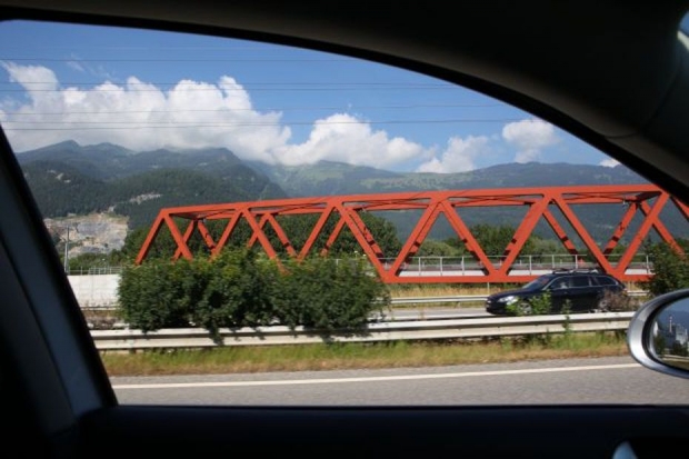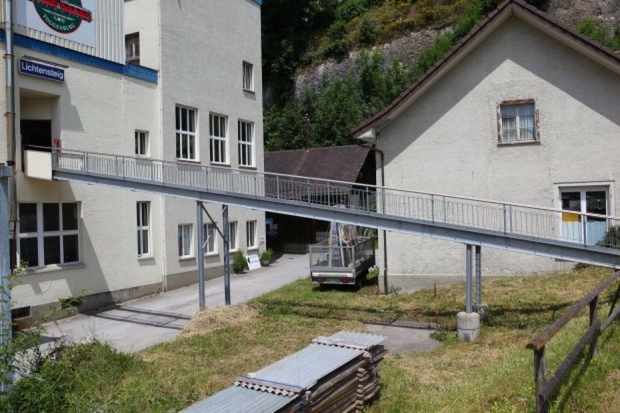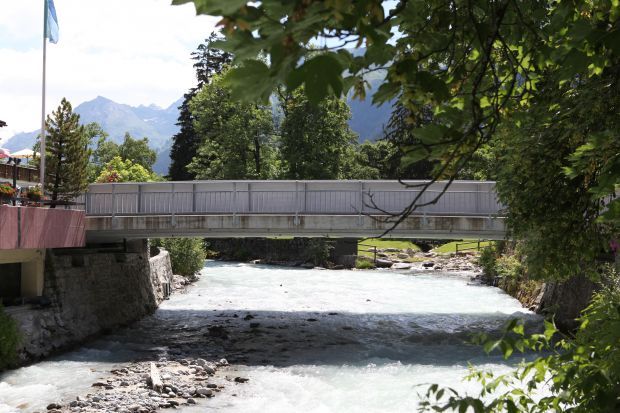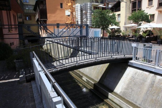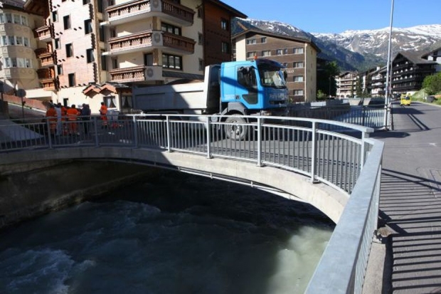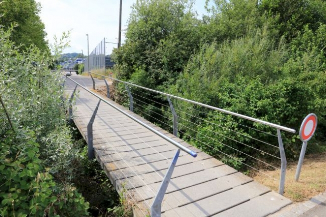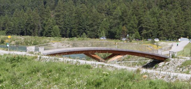 Material: Verbundbrücke aus Stahlträgern und Balsaholz ummantelt mit Glasfaserkunststoff