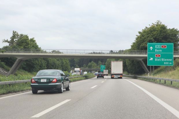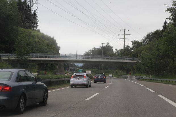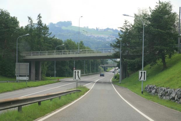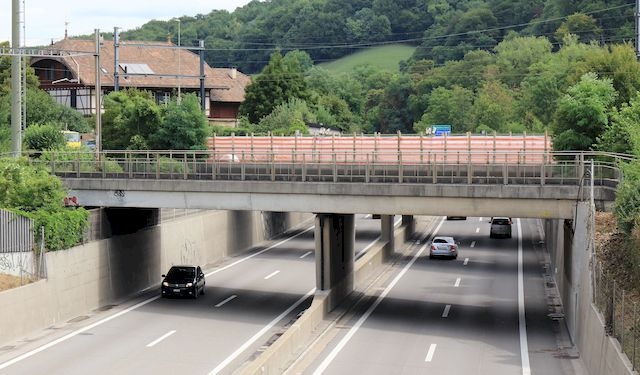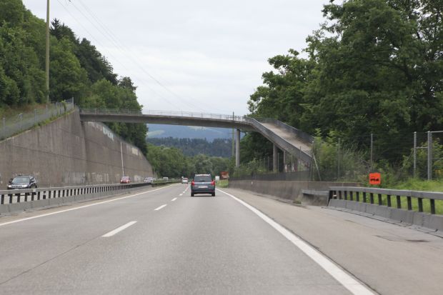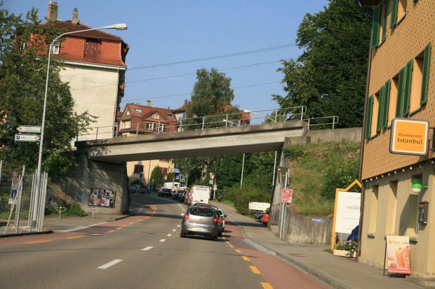Brückentyp: Balkenbrücke, aufgehängte Fahrbahn