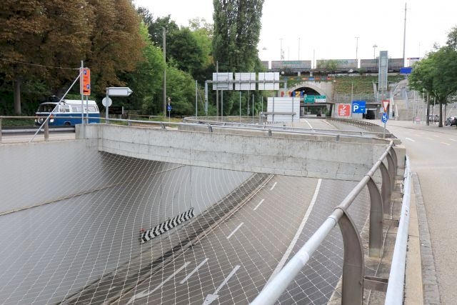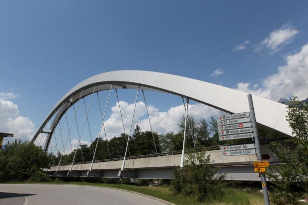 Brückentyp: Bogenbrücke, Bogen unter der Fahrbahn, Spannbandbrücke