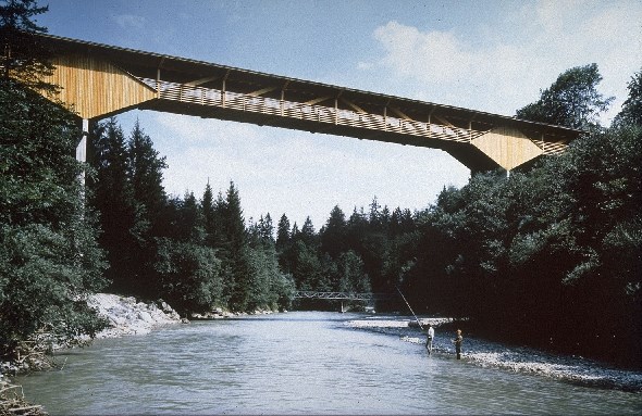 Brückentyp: Bogenbrücke, Bogen über der Fahrbahn, Gedeckte Holzbrücke, Covered Bridge
