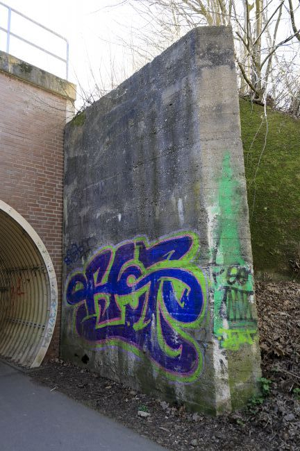Die ehem. Eisenbahnbrücke wurde für die neue Wellblechbogenbrücke verfüllt.
