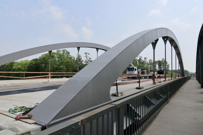 Arch bridge, arch over the roadway, tied-arch bridge