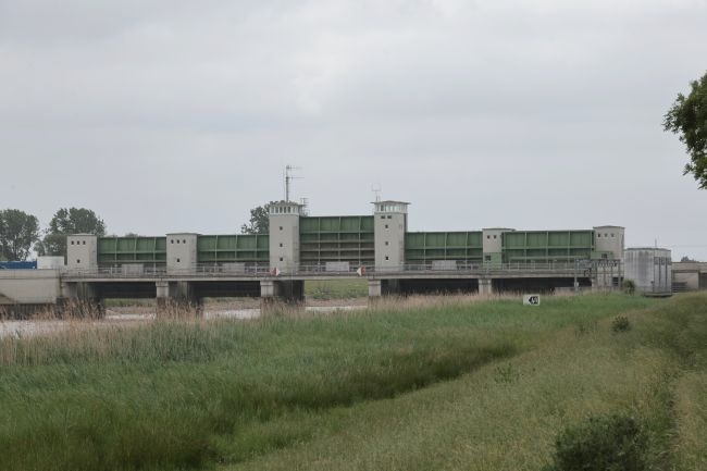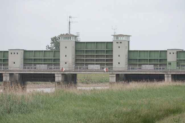Ledasperrwerk und -brücke