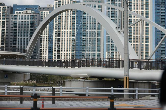 Bogenbrücke, Bogen über der Fahrbahn