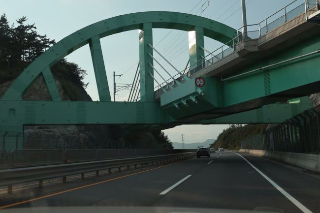 Bogenbrücke, Bogen über der Fahrbahn