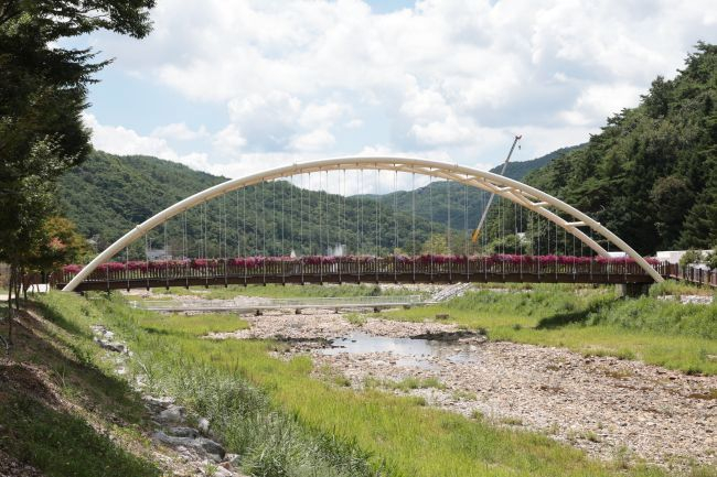 Bogenbrücke, Bogen über der Fahrbahn