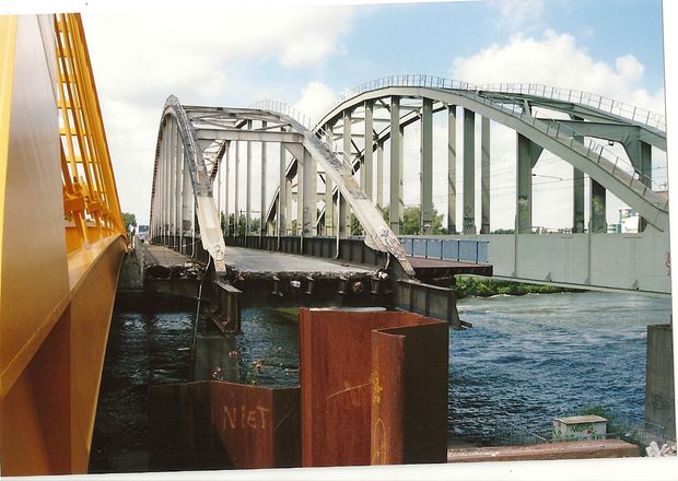 based on a rod arch bridge for road and rail, different superstructures<br>The road bridge is widened end of 2007 replaced then at South side and the railway bridge. (will be replaced by new bridge (BAS 8595).