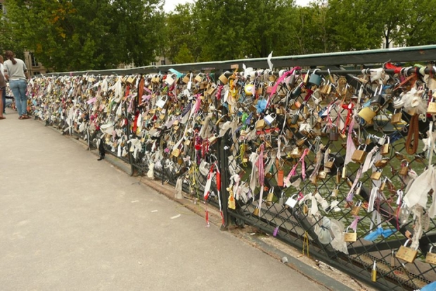 Liebesschlösser am Geländer