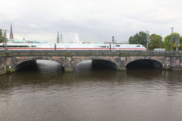 Information provided by Claus Wentz: here was a wooden drawbridge originating in the 16th century - the 1865-68-built structure was widened 1901/02 because of rapidly increasing rail traffic to 16 m - 47.55 m is the width - the span of the arches is 17 m.