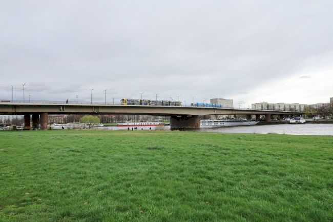 To the predecessor Bridge: the "Queen-Karola bridge" built 1892 - 1895 burdock city architect Hermann. Construction costs at the time about 3 million marks.<br>The bridge spanned the River with three steel arches by approximately 60 metres wide on stone pillars and on the old town Bank with two and the new town of shore with four massive Vault fields.<br>Then dimensions: length 326,60 m, Breiet 16 m, Max span 55,30 m.<br>This bridge was destroyed on the night of the bombing on February 13/14. After the war, the present-day reinforced concrete bridge was built.<br><br>Information provided by Hans-Joachim Wolprecht (19.02.2004): built in 1892/95 as Carola bridge (n. sächs. Queen), destroyed in 1945, 1967/71 new building with 3 prestressed Cove straps as Dr.-Rudolf-Friedrichs-Br. (n. 1 Dresdner postwar Mayor, ursprl. SPD), since 1991 Carolabr.