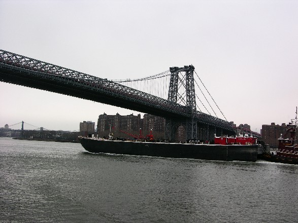 12.2 m high stiffening trusses, lattice steel pylon (first steel pylon) steel superstructure length 918 m<br><br><br>The first plans for the Williamsburg Bridge in 1896 first met with skepticism on little. For the first time, the pylons should be constructed in steel truss. There was also a change of the Framework of the stiffening beam on the pylon provided over the river was below the truss above the road surface, in the page fields. This was in the running in a continuously about the Roadway lying trussed changed.<br><br>Through the proximity to the Brooklyn Bridge, the in Sight is located, was a suspension bridge in planning from the outset. A cantilever bridge, which were at that time very popular, was not in Consider pulled. Aesthetics were equally important as economic, and both influenced the execution design. So were the suspension cable of the pylons led straight to the abutments, without the page fields to wear. As a result the cable could significantly be carried out easier and shorter. By the light Smaller foundations could be built steel construction of pylons, a large portion of the costs make that for all bridges. The pure truss structure took some persuasion, in one It meant contemporary report: "roughly speaking, would" Stone towers require a twice as large foundations, would five times as much cost and three times as long to continue [99].<span style="mso-spacerun: yes"> </span>Furthermore, the lighter steel towers could be higher as Stone towers, and as a result the cable got a deeper arc, what would lower tension and thus a smaller diameter the result.<br><br>The construction began in 1901 and was in full On the 1.1.1902 as a bridge Commissioner appointed way as Gustav Lindenthal was and replaced buck as Chief Engineer.<br>The suspension cable were the John A. Roebling's Sons company spun, and had huge problems, the the Completion was delayed by several months. The four wires with a 476 Mm ever 7696 parallel wires in diameter were originally through a sealing coat of linseed oil, a double coat of thick Protected oil and graphite. In addition, the wires were in a asphalt-impregnated sheet packed and wrapped with wire.<br><br>The bridge was a problem from the start. Three years after its completion there was problem with stability. The pylons is slightly moving towards Brooklyn. As a countermeasure were also supports the page fields. The increasing Transport, in particular the serious sub way trains made a reinforcement program from 1911 necessary. Ten years later it investigated the suspension cable and discovered heavy Korrossionsschäden on its cover, while the wires still were relatively well preserved. The cover was by galvanized wires renewed and supplemented the linseed oil. the oil had again in 1944 and 1963 to be renewed.<bR><br>During an inspection of 1979 were very strong Corrosion discovered on almost all major parts. As an immediate measure the road carrier have been repaired and every third Earrings by reinforced, new replaced. Particularly critical was the situation on the Main cables, which on the abutments hundreds wires broken and corroded. Other part, 90 per cent of the cross-sections were rusted away.<br><br>Three variants were further to the Discussion: the most cost-effective way was a renovation whole structure including the replacement of the steel track with Concrete filling by an orthotropic plate. The cost estimate alone Main suspension cable and road were well above 0 million.<br><bR>"The proposal of an engineering attracted some 1984 in New York City [Ammann & Whitney], the specialists in urban as also stately bodies were very skeptical. He sees -greatly simplified — above, under far-reaching Maintenance of traffic on the bridge the existing cable suspended structure and new larger and higher towers to transform.<bR>With the establishment of this new steel framework pylons to the existing around the rebuilding to begin; the existing river piers should be used with. Then should, starting from the pillars of that. two lane Strip in nightly block breaks the replaces existing roadway construction with an orthotropic plate be. Since this must be about 90 cm higher, she should both parties in Direction of travel are connected through makeshift ramps. The Is approximately equal to the weight of the new roadway construction old, so that no additional loads in the cables. The road construction under the two railway tracks can similarly renewed be.<br><br>With the progress of the new construction of two pylons out after both sides can also use the radiating arranged tensioning ropes attached the first are still limp stay, as long as the new design on the cross beams of the rests available.<p> <p class="MsoNormal">The most difficult construction is the tensing Inclined ropes be, because while the construction of new stands and the old also under the discharge upwards deforms. Only after full of tension inclined ropes, she can then piece by piece be removed, followed by the dismantling of vertical hangers and the Cable. Then the truss can be used as last stage be talked off the old pylons in the new.<br><br>Since the side holes only the 92 m have length, be just as much of the 488 m central opening, so 92 m from under Precompression are the pylons, the remaining 120 m in the middle of the main opening will be as a central part of a suspension bridge viewed."[5001]