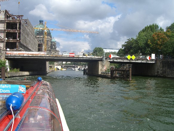 <br>in 1895, the bridge with three arches of larger was rebuilt and renamed at the rededication of the bridges monument on May 9, 1896 in elector bridge. It allowed the new wide main street, the King's road now also the unhindered continuation. This road began on the right directly behind the bridge with the No. 1 and marked the entrance to the old Berlin City Centre. Structurally the bridge design was the predecessor bridge, stone brick vault with superior sandstone were elected and the place for the statue was retained. She now had a ten metre wide roadway and on both sides the 3.90-meter-wide sidewalks.<br><br>At the end of the second world war, the elector bridge suffered severe damage by blasting the Wehrmacht only stood still the centerpiece. The equestrian statue was been outsourced, it was later found in the Tegeler see. After the war, wooden parts of temporary bridge crossing of the river Spree at this point were used. 1947 to 1949 the restorations replaced with steel girders. Strong damage to the eastern part of the vault in 1952 resulted in a suspension of bridge for vehicle traffic, and finally the vault had to be removed completely. Due to the important traffic function of this bridge the magistrate had a steel girder construction with steel concrete road on the bridge foundations. This more temporary replaced until 1974-1976 in connection with the construction of the Palace of the Republic a better steel structure of 29 metres in length. Since the City Hall bridge is again reserved only the pedestrian and bicycle traffic, as it is officially called since 1951. The equestrian statue of the great elector was permanently raised after the war the Charlottenburg Palace front of.<br><br>The bridge no longer exists, only 2 pipes are still transferred.My pictures from the 21.7.09 document the condition of the former bridge. A new bridge construction is planned. Helmut Fischer