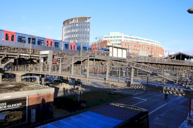 Footbridge to the Skytrain station Baumwall
