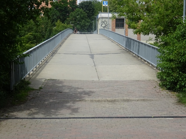 Fußgängerbrücke am Westende des U Bahnhofes Louis Lewin Straße / U Bahnlinie 5 Strecke Alexander Platz - Hönow