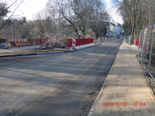 Nach einem Besuch der Brücke am 29.4.2017 wurde der Zustand der Brücke wieder in den Betrieb befindlich umgeschrieben, weil sie zum Teil überholt und für den Rad- und Fußgängerverkehr freigegeben war. Entsprechende Bilder mit diesem Datum werden hier den neuen / alten Zustand sichtbar machen.