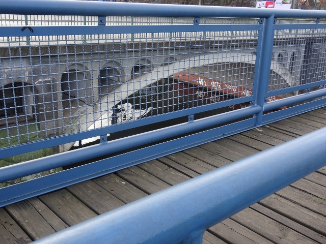Stubenrauchbrücke (neu) / Spree, im Bildvordergrund in blau