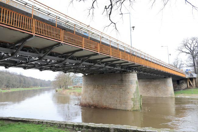 1945 the Wehrmacht blew up, rebuilt, 2006 repaired 18.5.2006 she earned the nickname "Pope John Paul II bridge" (imenia Papieża Jana Pawła most II);
