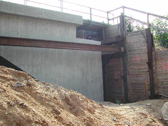 The bridge superstructure was built beside the Northern dam. On a weekend, the old prestressed concrete structure was torn down and the new superstructure on heavy transport vehicles on the motorway inserted.