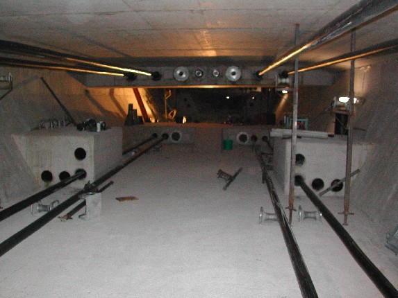 im Inneren kann man die externe Vorspannung gut erkennen, im Bauzustand sind nur horizontale Spannglieder eingebaut die den Querschnitt komplett überdrücken