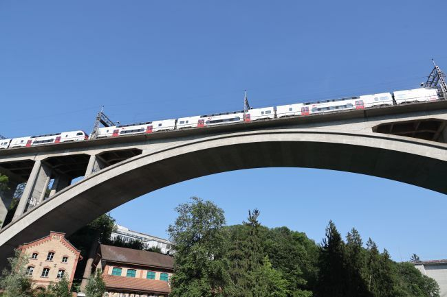 vorne die Lorraine-Strassenbrücke hinten die Lorraine Eisenbahnbrücke