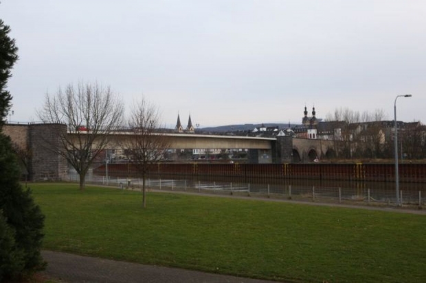 original a stone arch bridge, was they destroyed to the Canalization of the Moselle river and rebuilt.<br><br>Information provided by Claus Wentz to the original bridge:<br>Built from 1343 until 1428 - total length = 325 m - 16 sheets - clear widths between 16.50 and 20,25 m - width 11,50 m to 13,60 m.<br>The bridge of the landlord had on the stone pillars of an already 1220 mentioned wooden strut frame construction built Archbishop Baldwin of Luxembourg.<br><br>Information provided by Ralf A. Flemming:<bR>In Roman times as a wooden bridge across the Moselle existent, it mid-14th century "of Trier elector and Archbishop Baldwin in stone built": the "Mosel bridge", especially since the construction of the "Europabrücke" ("new bridge") in the "Old bridge", was called and now officially called "Balduinbrücke" since the reconstruction after the war.
