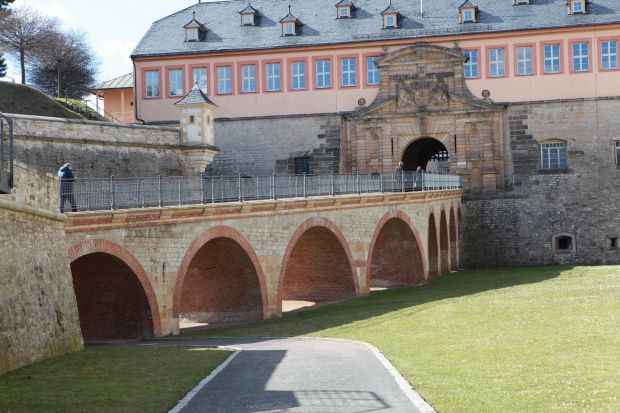 This is the access bridge to the St. Peter's Gate on the Petersberg