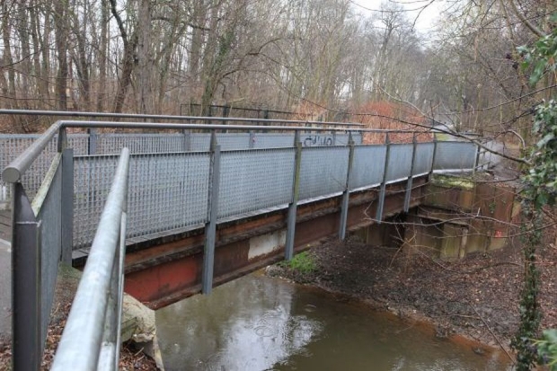 Die hier gezeigte Brücke wurde 2001 als provisorischer Ersatz für den (wegen der Zoo-Erweiterung nicht mehr nutzbaren) Wilhelmsteg errichtet und hat offiziell keinen Namen.