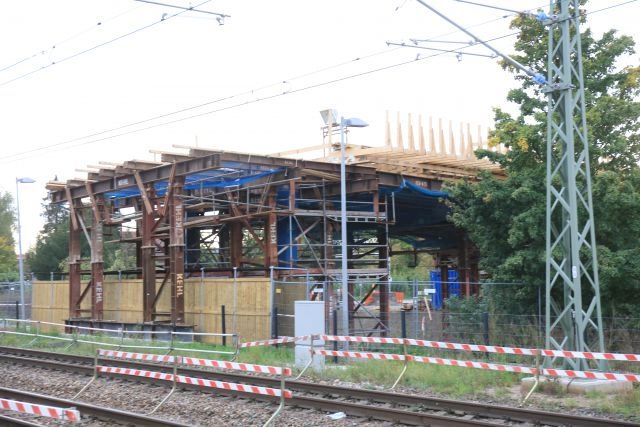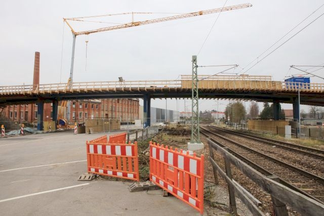 Brückenneubau als Ersatz für den Bahnübergang, die Arbeiten haben sich aufgrund archäologischer Ausgrabungen um 2 jahre verzögert