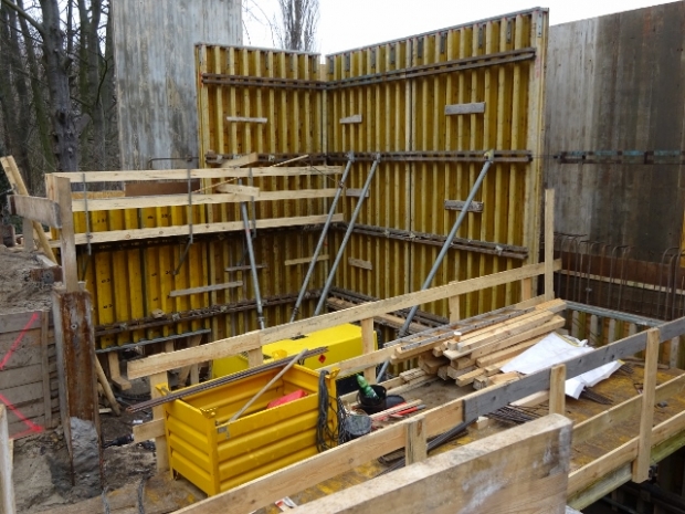 Zimmermann - Linden Straßenbrücke / Wuhle, Bau der Widerlager