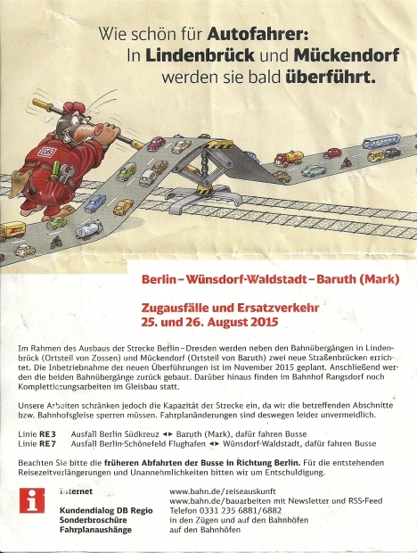 Chausseestraßenbrücke / EU Strecke Berlin - Dresden Info der Deutschen Bahn vom Juli 2015