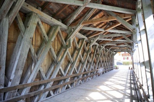 covered wooden bridge, covered bridge, truss bridge