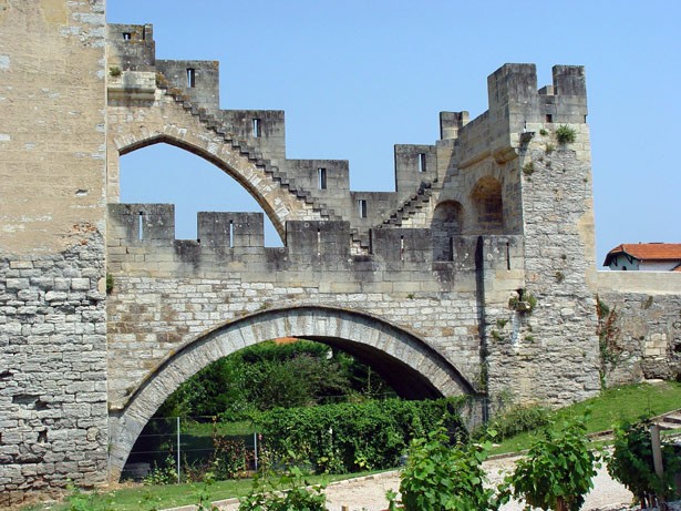die Brücke wurde ab dem Jahr 1350 benutzt, obwohl sie erst 1380 fertig gestellt wurde; zwei Brückentürme (Turmhöhe 40.00 m), restauriert in den Jahren 1879-1882 durch den Architekten Paul Gout; eine der berühmtesten befestigten Brücken der Welt.