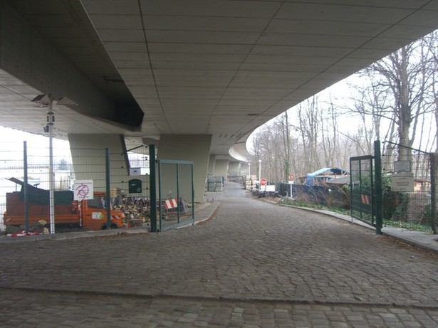 Die Rudolf-Wissell-Brücke überquert zwischen Güterbahnhof Charlottenburg und Siemensdamm im Zuge der Stadtautobahn die im Spreetal gelegenen Gleisanlagen der S-, U- und Fernbahn sowie die Spree. Die mit 930 m längste Brücke Berlins wurde zwischen 1958 und 1961 unter der Bezeichnung Nordwestbogenbrücke errichtet und trägt seit Ende 1963 den Namen des Reichsarbeitsministers und Antifaschisten Rudolf Wissell (1869-1962). Das imposante Bauwerk auf 12 Stützen ist bis zu 16 m hoch. Mit der Frequenz von mehr als 120 000 Fahrzeugen pro Tag ist es Teil eines der höchstbelasteten Autobahnabschnitte in Deutschland. (Quelle: www.luise-berlin.de)