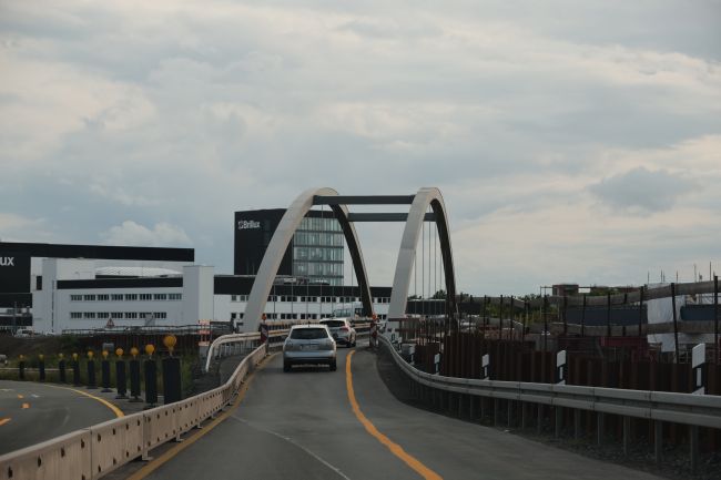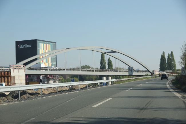 Bogenbrücke, Bogen über der Fahrbahn, Stabbogenbrücke