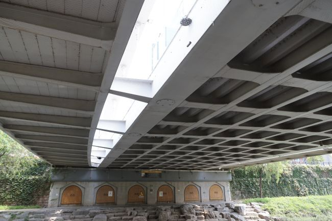 Bogenbrücke, Bogen über der Fahrbahn