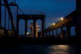 am 25.02.2008 wurde das Hauptfeld (der Bogen) von Pontons angehoben und in Position gebracht