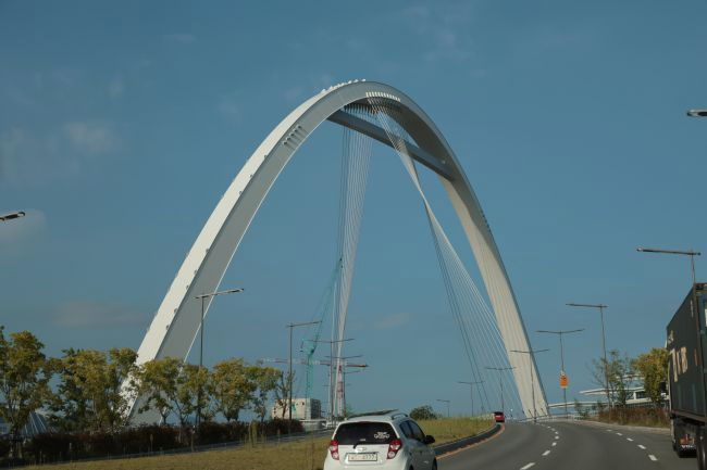 Bogenbrücke, Bogen über der Fahrbahn