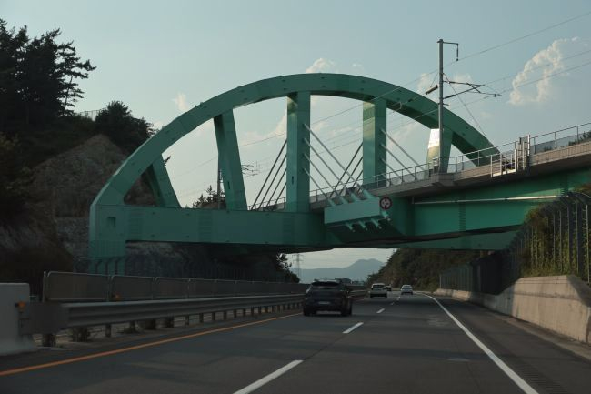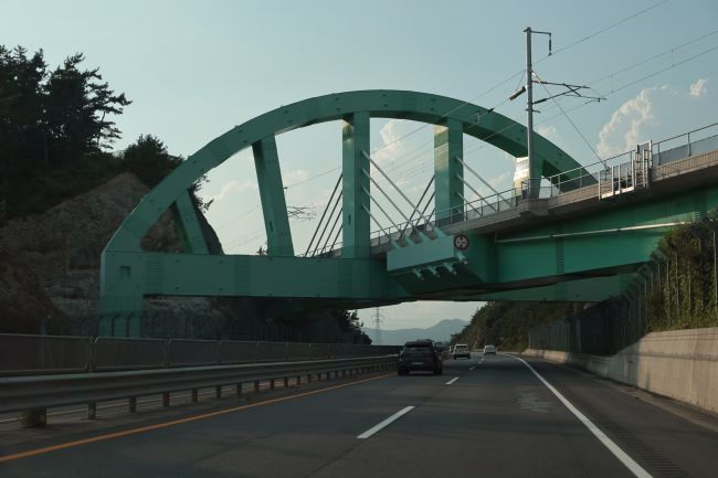 Bogenbrücke, Bogen über der Fahrbahn