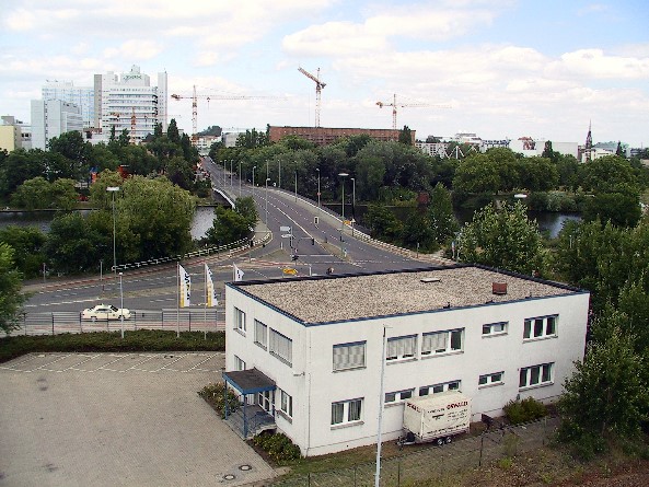 Nordhafenbrücke im Vordergrund